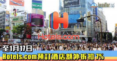 Hotels.com 推出新年酒店預訂優惠,1月17日或之前預訂酒店即可折扣 7 %!(名額:1000名)