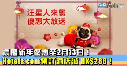 Hotels.com 推出農曆新年酒店預訂優惠,2 月 13 日或之前預訂酒店滿 HK$2,388 即減 HK…