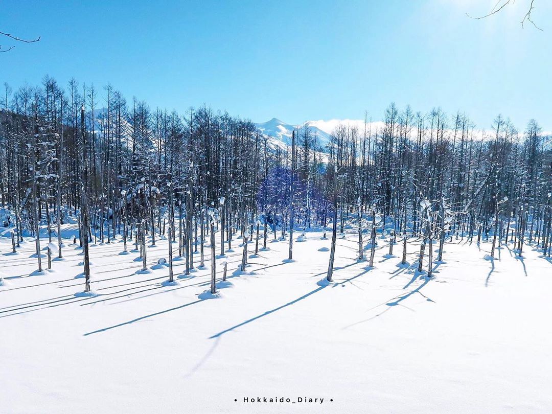 1988年於十勝岳發生火山爆發,為了防止火山泥流蔓延而建設了多個攔河堤,青池就是當時其中的一座攔河堤所形成的水池。而白鬚瀑布的水源在流經懸崖途中混和了鋁,到達青池時便成了如此美景。當季節變更,青池也會產生不同的變化,春季可以看到結冰的水面融化如白沙般;夏季可以欣賞到如天空之鏡的美景;秋季楓葉和枯樹的相輝映下更為動人;而小編呢,獨愛冬季,在北海道的冬天,這裡亦是一個必去景點,皆因能看到純白雪景覆蓋青池的神秘美景。