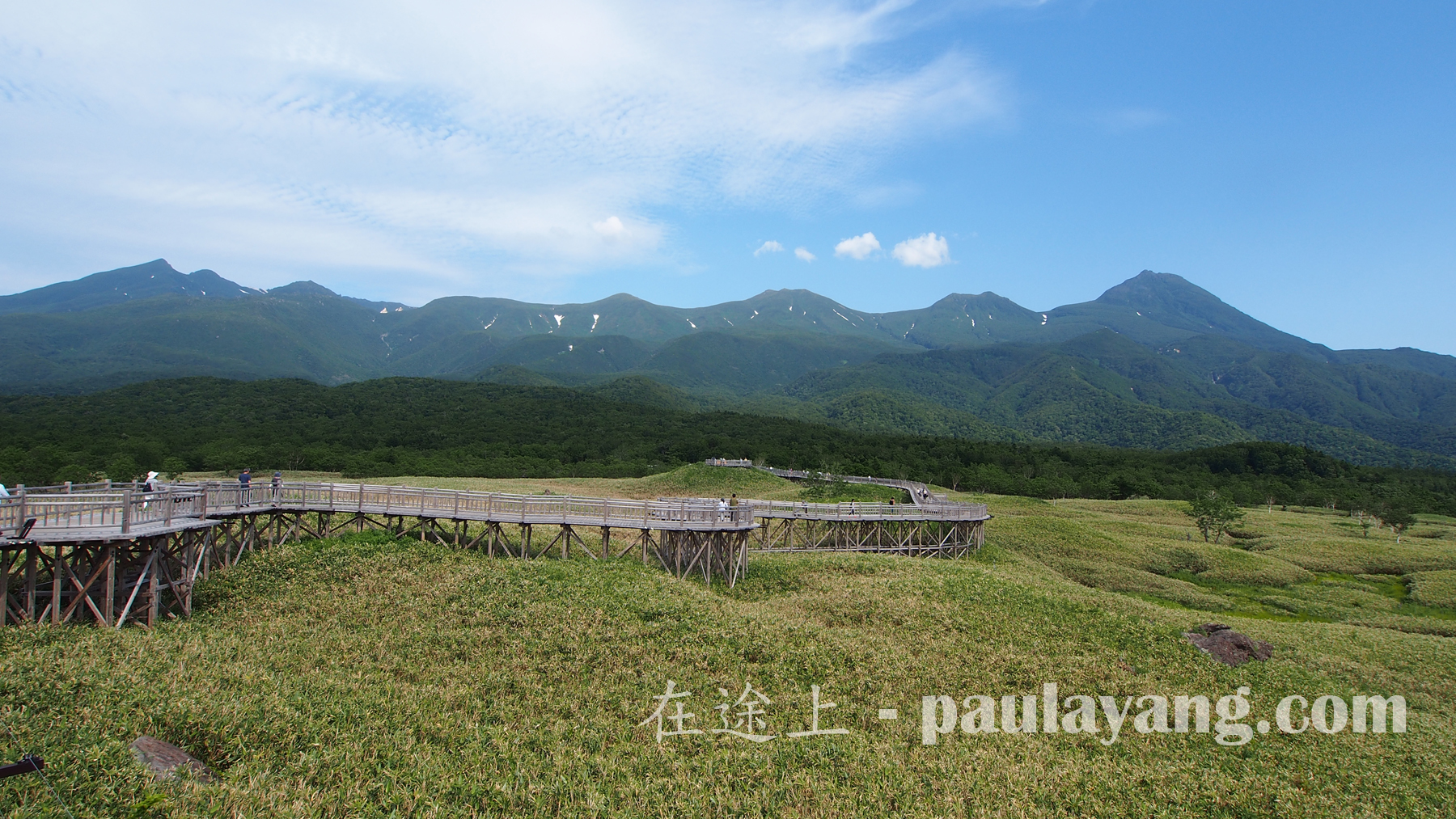 遠眺知床連山,高架木道方便遊客步行外,也配合周圍景色。