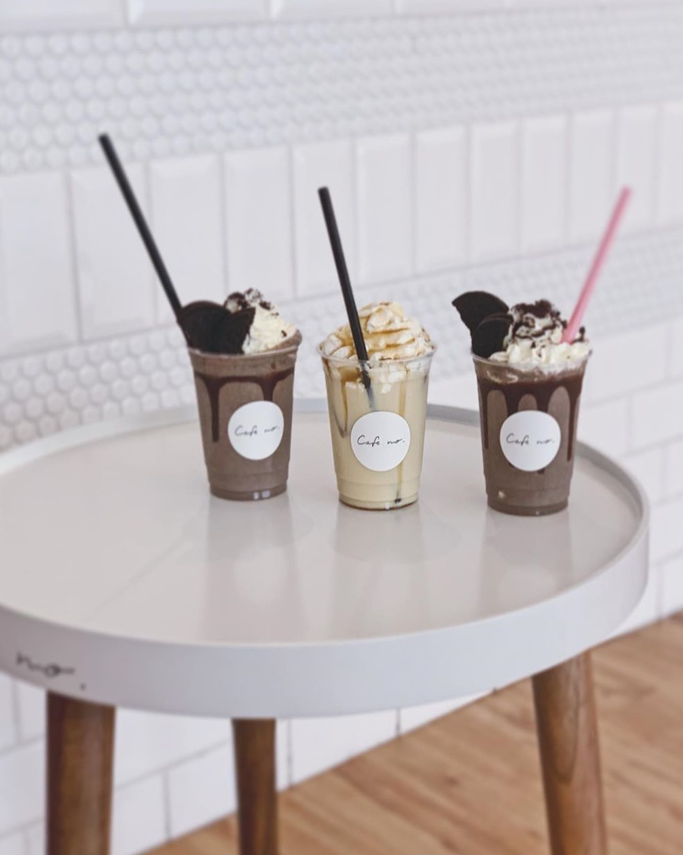 大阪高人氣的「cafe no.」在福岡開分店了喔!cafe no. Fukuoka以非常簡約的設計,再在牆壁上畫上可愛的繪畫,讓你打卡時可以將飲品和牆壁上的繪畫融合。而店內提供的飲品則是放入長形透明塑膠瓶中,飲品夢幻的顏色可以直接透過塑膠瓶看到,打卡度滿分!