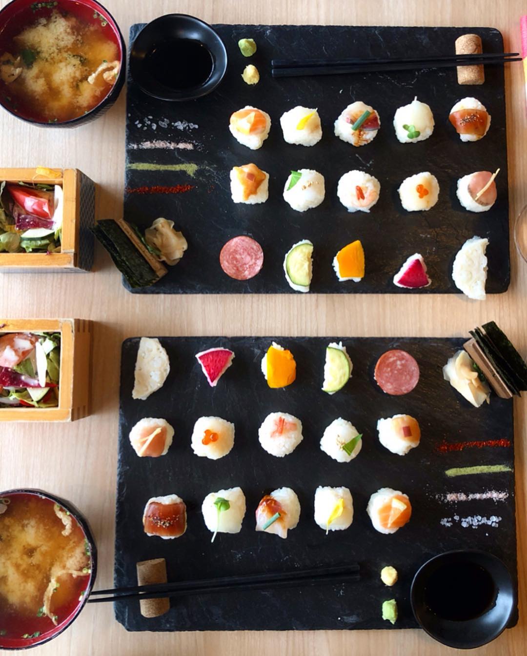 IZAKAYA New Style是福岡的其中一間超受歡迎的餐廳,中午是間餐廳,晚上搖身一變成居酒屋。而IZAKAYA New Style是以午餐限定、日本傳統童玩手毬為名的「手毬壽司」(手まり寿司)爆紅於日本年輕女孩之間,成為了超夯的IG熱門網美打卡店。15顆可愛又色彩繽紛的手毬壽司整齊放在黑色鐵板上,蝦子、干貝、魚卵、三文魚壽司應有盡有。