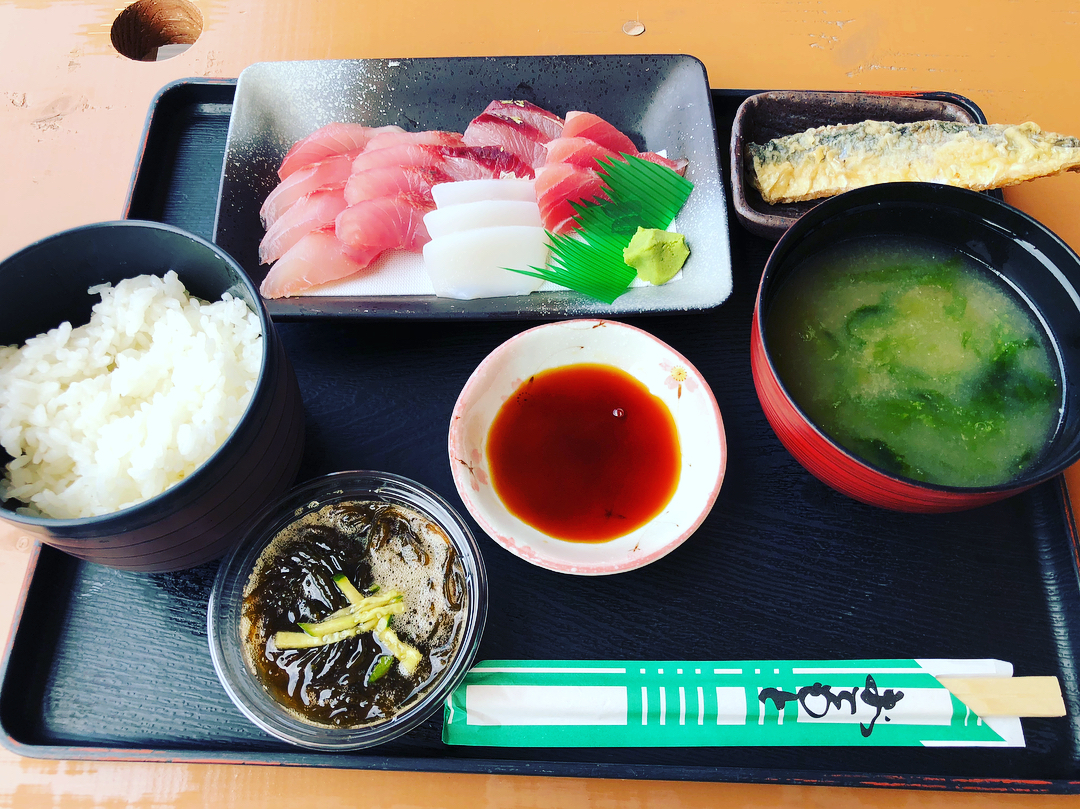 沖繩本島亦有分店的海人食堂最吸引的就是,可以看著海景吃新鮮現撈海鮮!因為伊江島四面環海,魚獲豐收,地產地消,遊人來到都必定會嘗嘗這裏的刺身,而海人食堂的刺身定食售價只是1,000円(約港幣$72)!定食包了四款刺身、兩碟小菜、一碗味噌湯及白飯,相當豐富!還有提供免費茶水可自行取用。