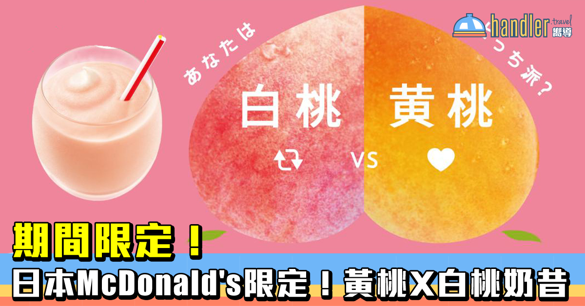 桃迷必試!之前推出嘅香桃奶昔均大受歡迎,8 月 2 日起,日本 McDonald’s 推出期間限定香桃奶昔!今年更加升級加入黃桃與白桃 Crossover,雙重桃香雙重滋味!準備出發去日本嘅朋友千祈唔好錯過丫!