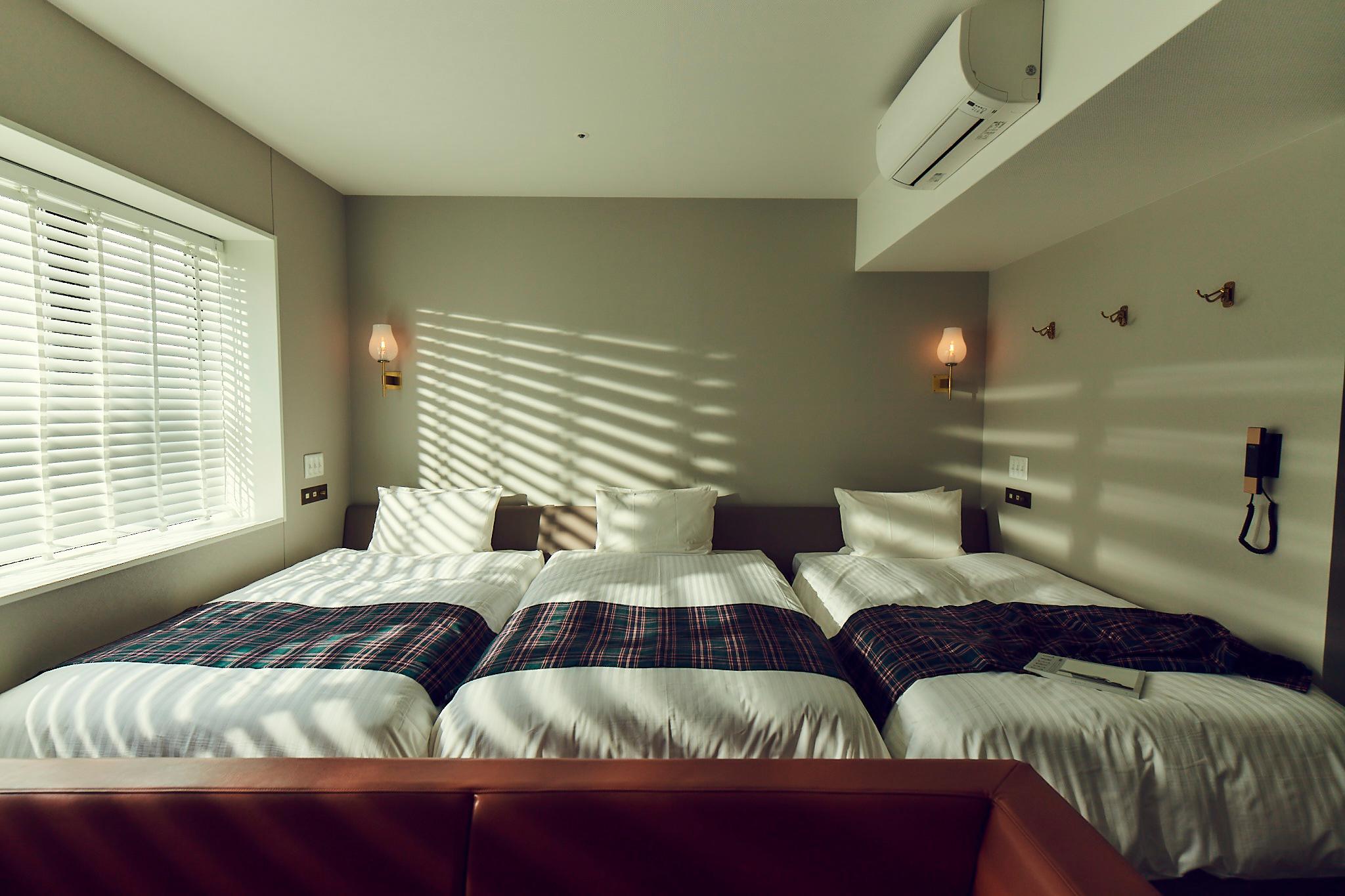 酒店整體設計簡潔,房間以白色為主,配上溫暖的木材,還有酒店獨有的格仔紋布料,非常年輕時尚的設計!而且酒店內設有酒吧,當中的燈飾是特別請來刺繍藝術家MANA MORIMOTO設計,藝術感滿滿,晚上可以過來喝兩杯,坐在旁邊的露天座位,看著四周亮起的小燈炮,氣氛更是一流!