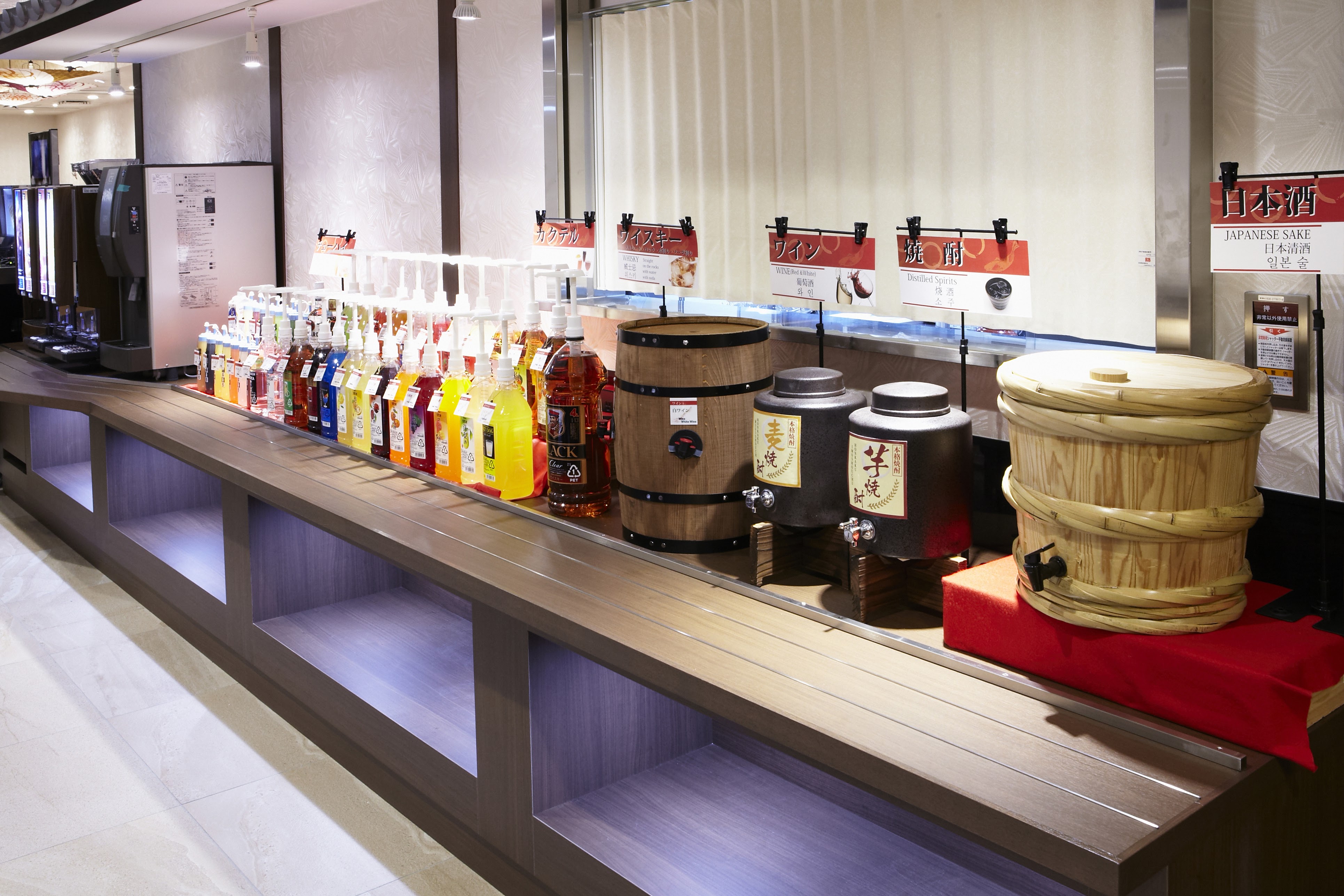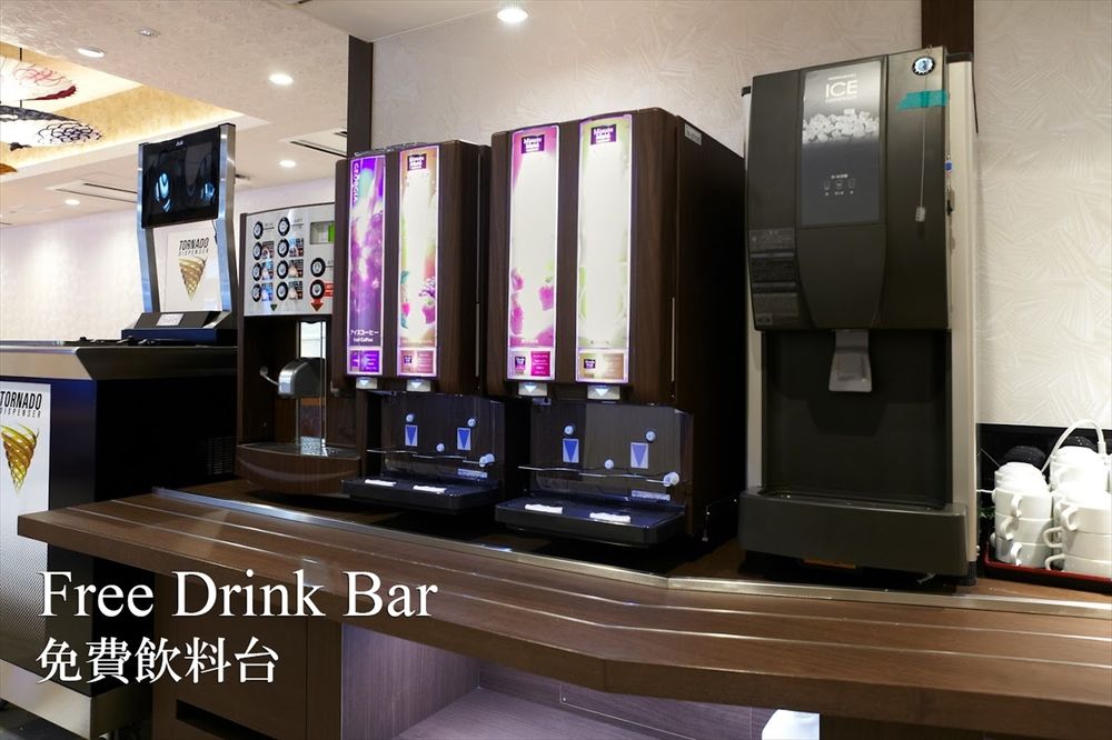 上文提到房間內的冰箱內的飲料都可以免費飲用,酒店還在早餐會場內提供24小時免費飲料,供應綠茶、烘培茶、紅茶、咖啡、冷/熱水等予住客自由飲用。每天下午2時後,還會供應蛋糕自助餐,