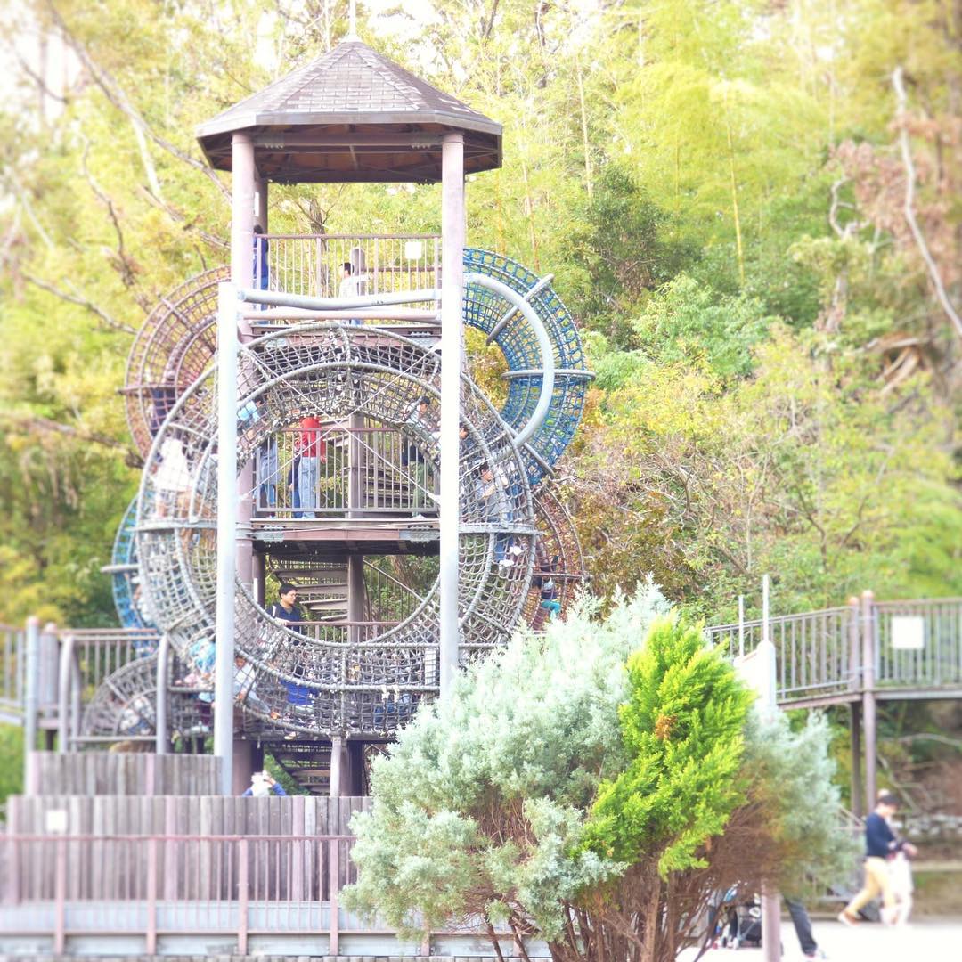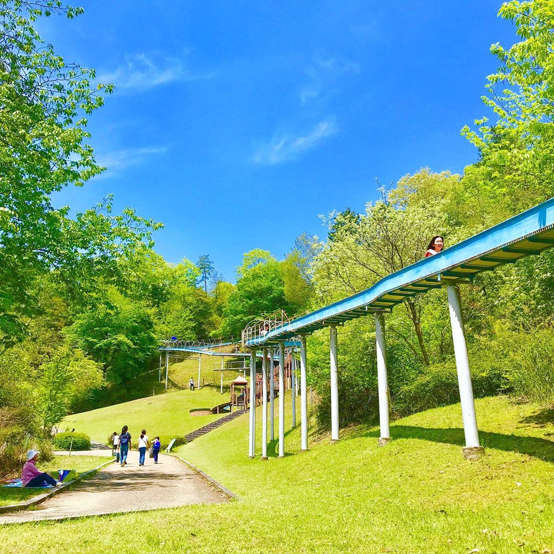位於京都府城陽市的鴻之巣山運動公園,其滾軸滑梯全長140米,整條滑梯貫穿園內草地,一邊溜滑梯還可以飽覽公園全景!公園更貼心地提供坐墊,不用怕溜滑梯時屁股會因為磨擦而磨痛呢!