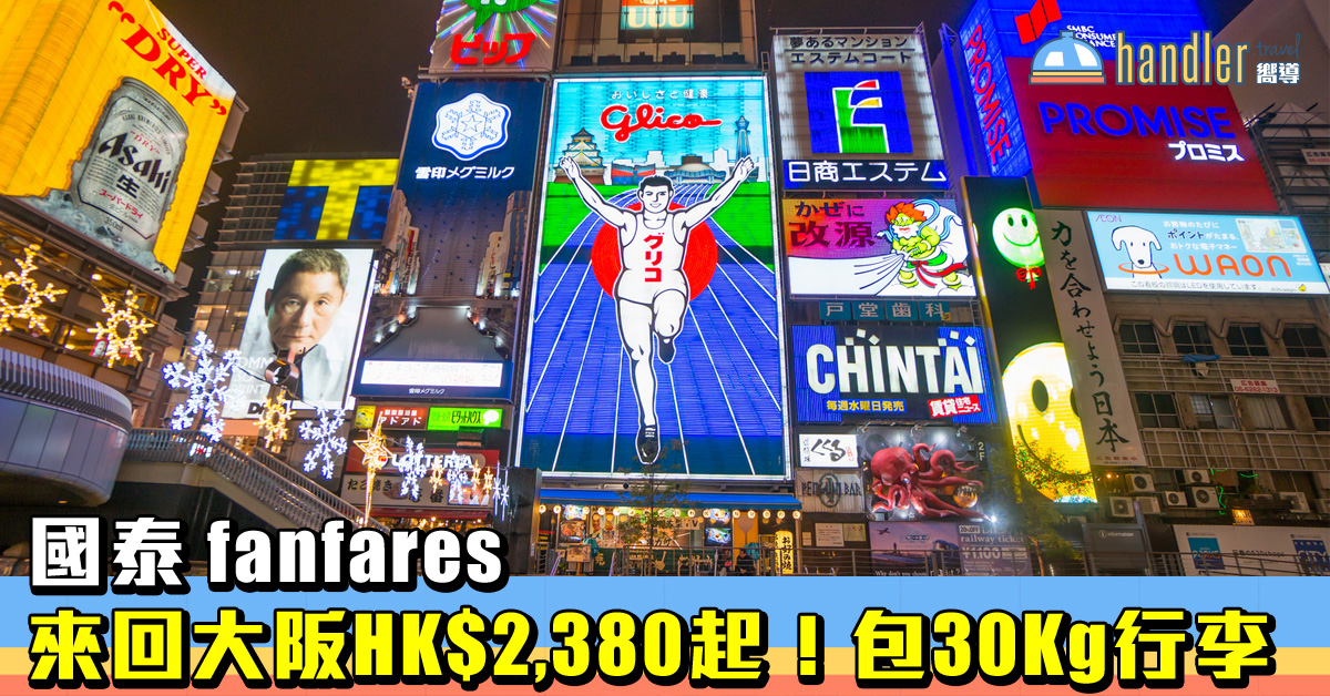 今次國泰航空 fanfares 推出來回大阪優惠,票價HK$2,380起(連稅HK$2,851起),已經包括機上膳食及 30Kg 寄艙行李!去程航班時間不俗,精力旺盛的朋友可以選擇凌晨機,但回程就集中以早機為主,相等於沒了最後一天。