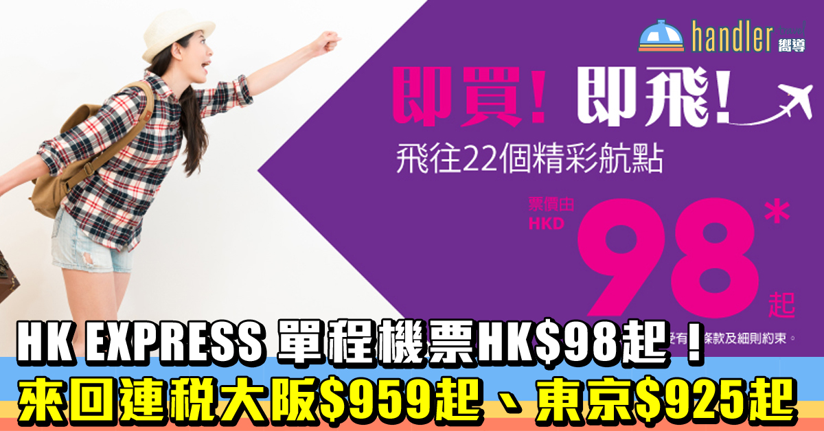 HK EXPRESS 單程機票HK$98起!來回連稅大阪HK$959起、東京 HK$925起!