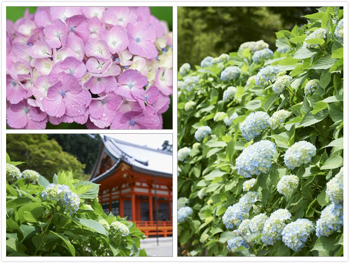 神社位於地鐵本町站附近,交通非常方便。綻放著可愛的粉紅色和紫色花瓣,將梅雨季節點綴得光鮮亮麗的繡球花。在天晴下欣賞其盛開的美姿或在雨天中被雨珠淋濕時的嬌弱容姿,別有一番風味。