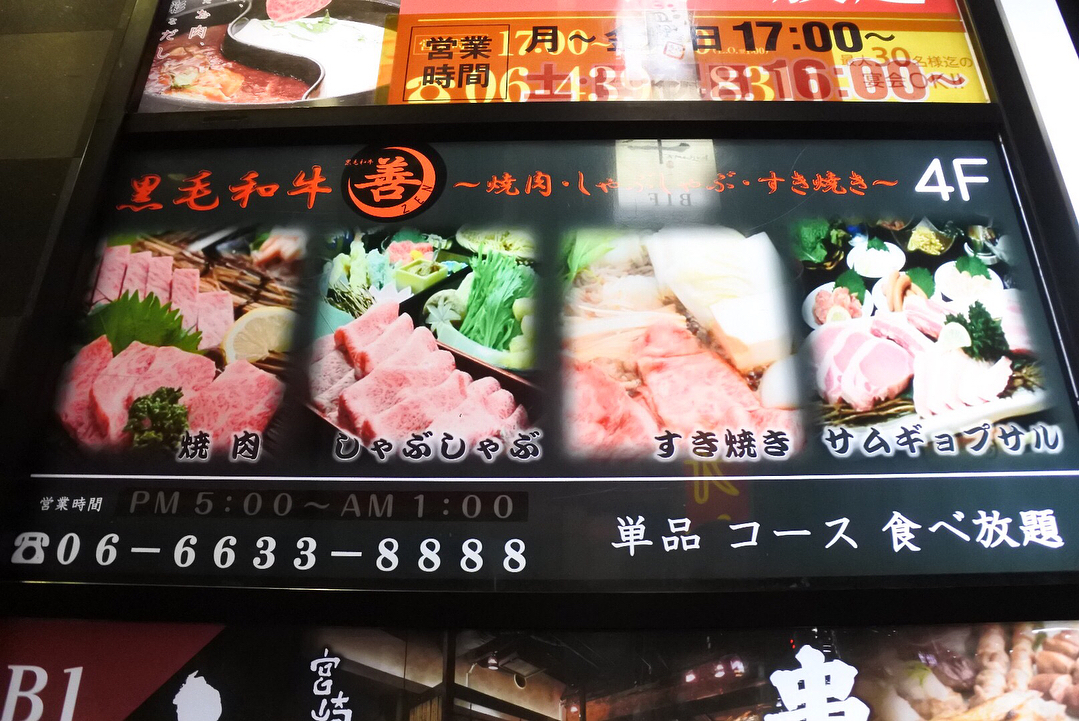 大阪燒肉推薦 – 黑毛和牛 善:A4和牛燒肉、火鍋、壽喜燒樣樣有