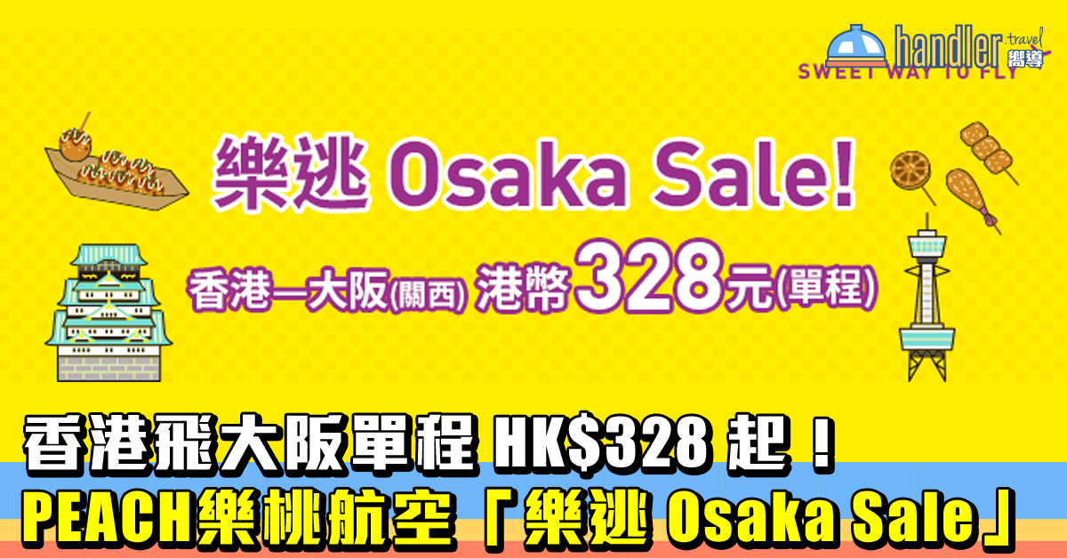 香港飛大阪單程 HK$328 起! PEACH樂桃航空「樂逃 Osaka Sale」!