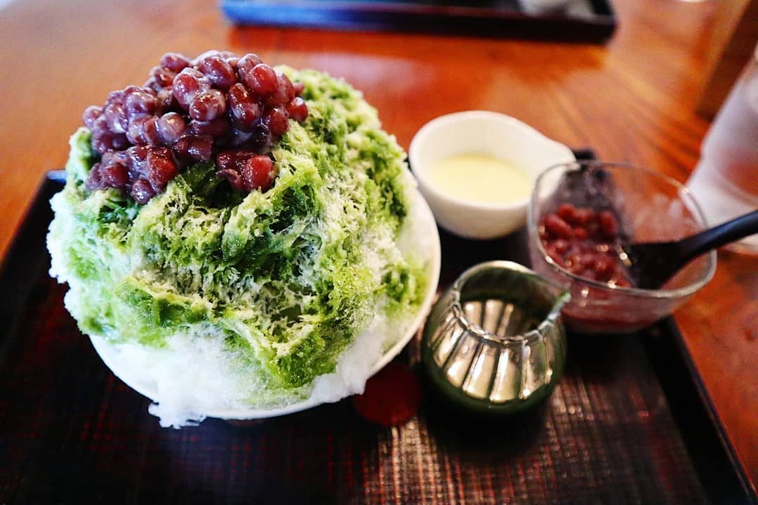 長瀞人氣排隊美食店阿左美冷藏刨冰店,主打吃了也不會頭痛的天然冰,這種天然冰製作過程非常繁複,只能在冬天將長瀞山間的優質湧泉利引到戶外水池,然後等待1個月左右讓冰自然凍結,再切塊後運送到冷凍庫保存,因為結冰速度慢,吃起來也不那麼容易頭痛!而店內人氣之選就是「特色果汁刨冰」,配上橘子、桃子和葡萄3種口味的果汁糖漿,酸酸甜甜的口味,特別消暑!
