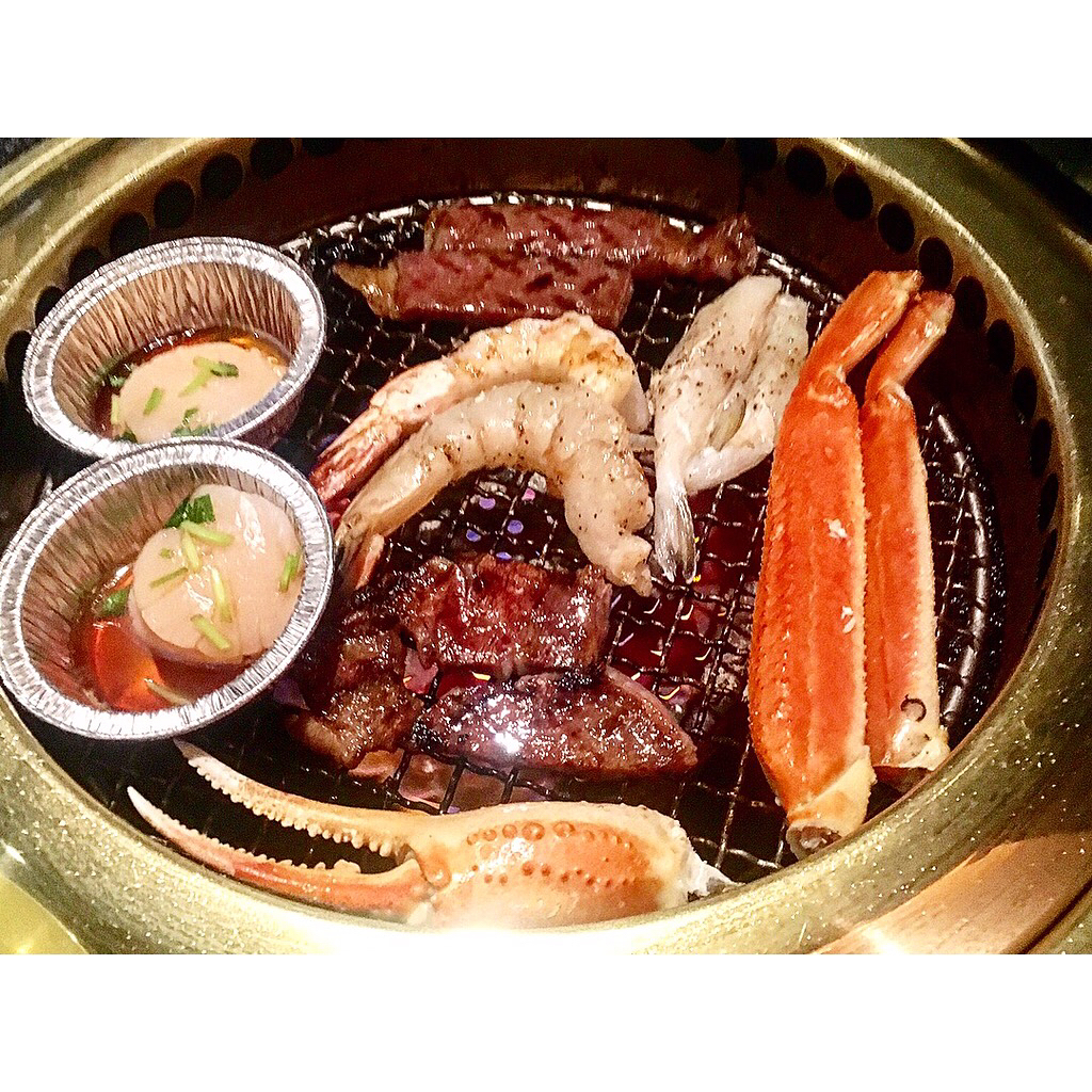 食べログ有3.54分,每天新鮮直送黑毛和牛,入口即溶,一試難忘。90分鐘燒肉放題有三種選擇:雪之宴 7,130円、月之宴 11,020円、松阪之宴 25,470円,雪之宴可以吃到鹽味牛舌、五花肉、菲力、牛胃、鹽味和醬味雞肉等肉類;蟹、扇具、蝦和魷魚等海鮮;以及各種蔬菜、飯類和湯等,已經十分豐富。記得要先