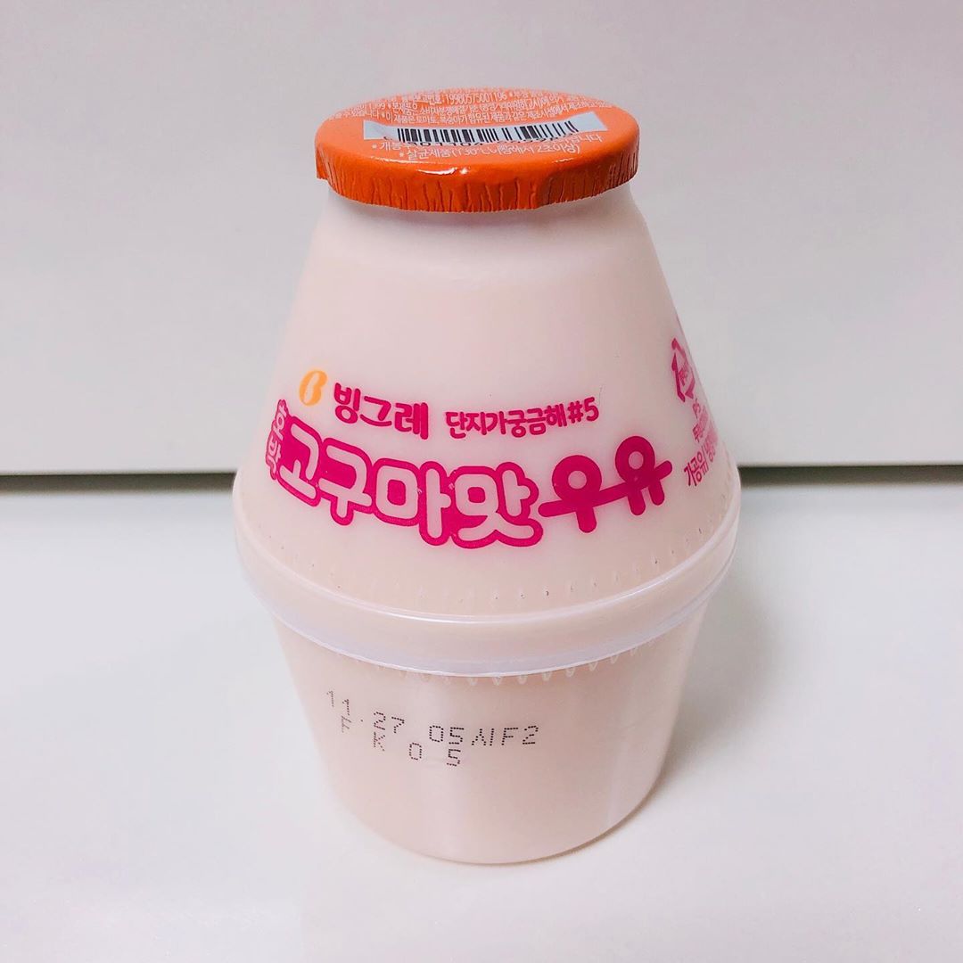 接下來這個不用多說,大家都知道是韓國便利店必買的飲品了吧?國民級別的Binggrae香蕉牛奶,絕對是人手一瓶的熱銷飲品,其長年銷售款還有草莓、咖啡和原味,另外亦有推出不少期間限定口味,像是荔枝、雲尼拿、柑橘等,而最新推出的就是蕃薯味牛奶!