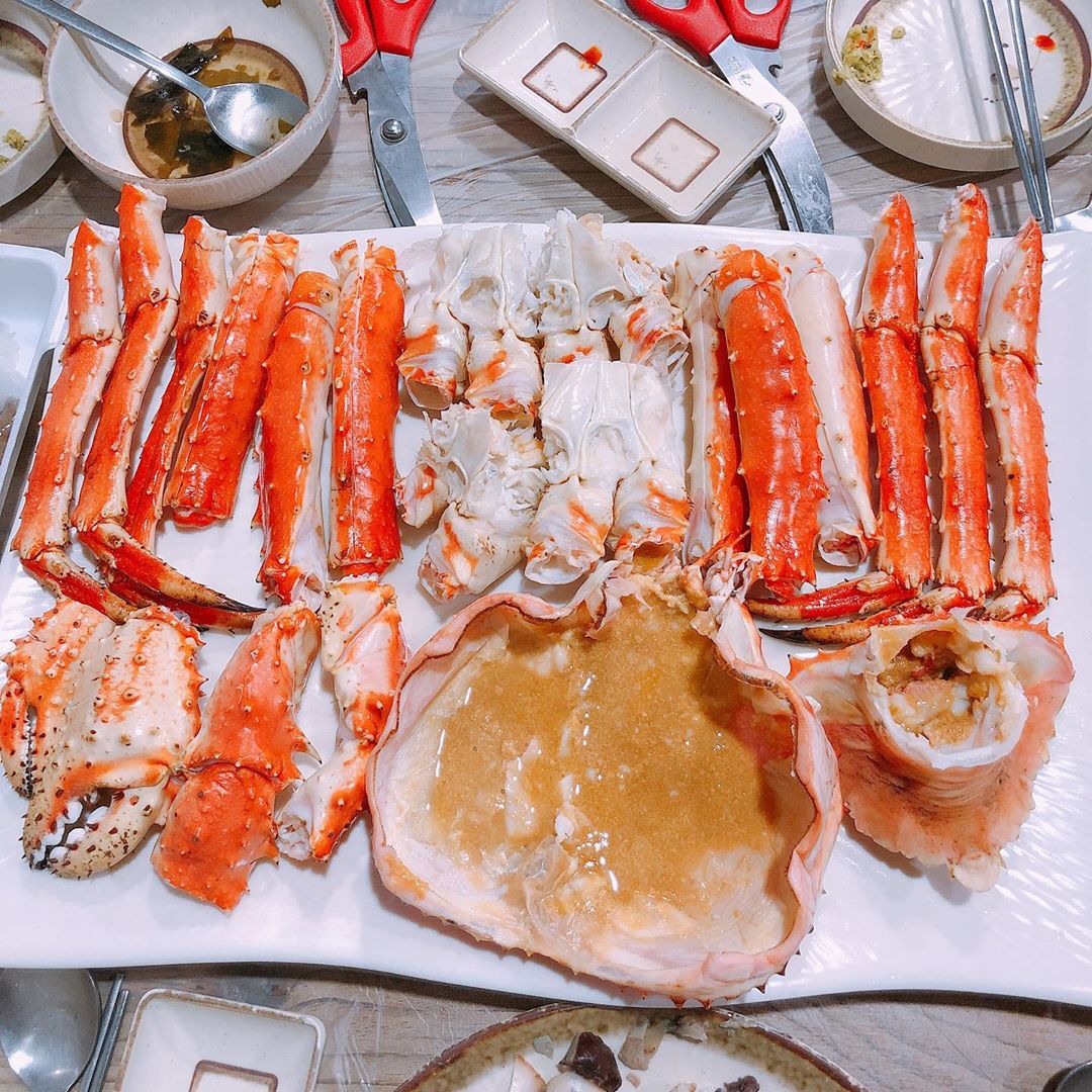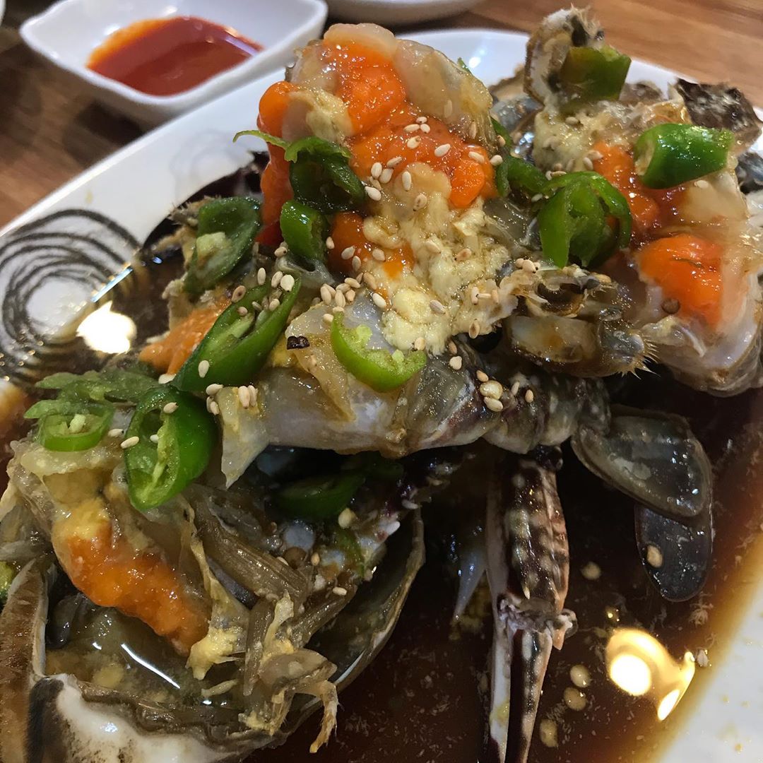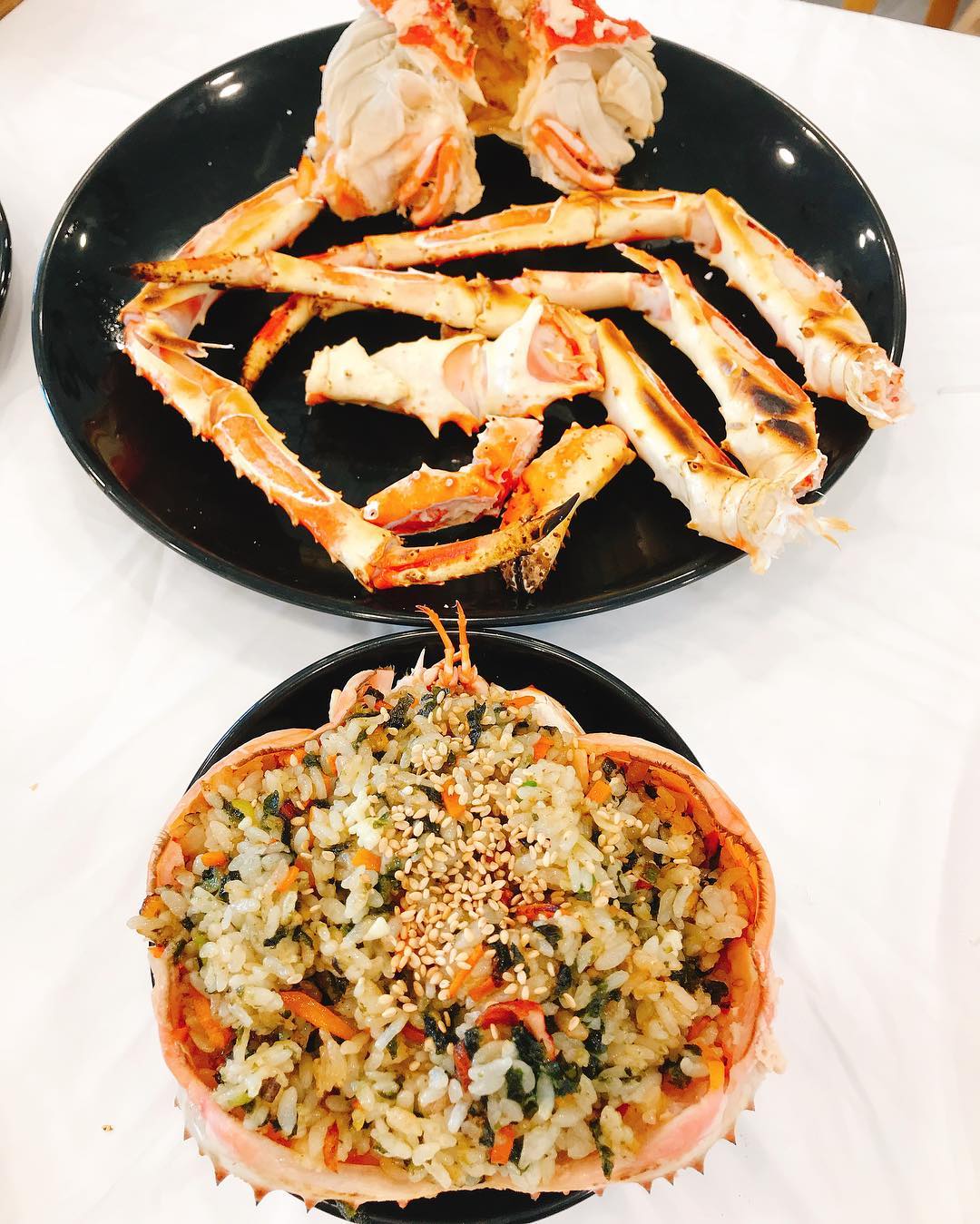 鷺梁津水產市場跟其他市場一樣,先在一樓漁產市場挑海鮮,並現場支付食材費用給魚販,再到二樓找食堂店家幫忙料理,支付餐廳餐點料理費。而在鷺梁津,必食的當屬長腳蟹、帝王蟹、活章魚和生魚片,其中蟹蓋炒飯更可就是每桌必點!蟹黃配上麻油、芝麻、紫菜,再和白飯混合,甘甜的滋味令人忍不住一口接著一口!