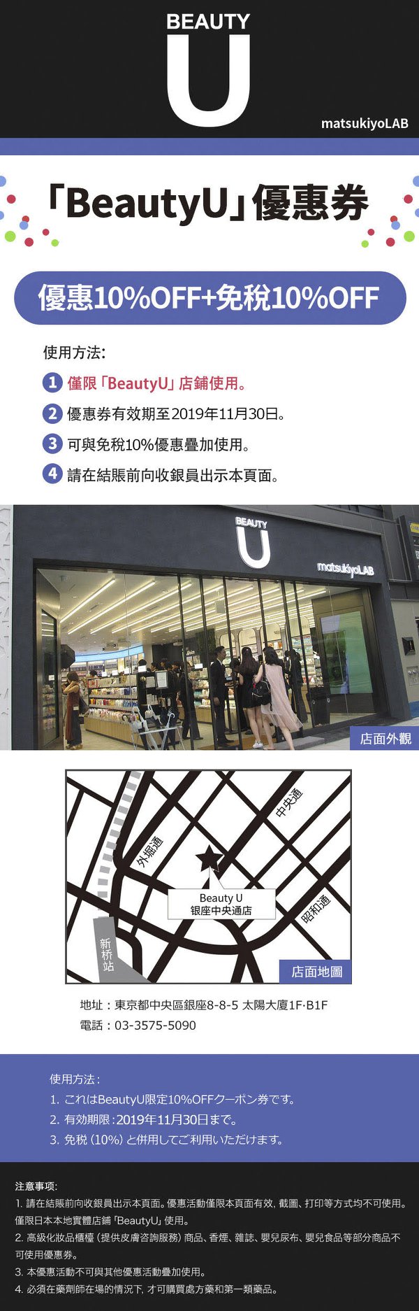 ‣東京銀座BeautyU限定優惠券