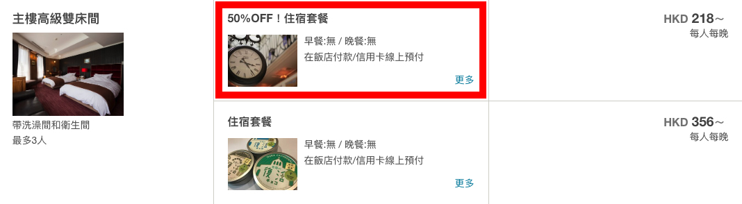 - 適用酒店:指定參與活動的酒店(搜尋後會出現折扣方案選項,點選方案並完成預訂即可)