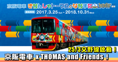 京阪電車將聯乘THOMAS and Friends 推出「湯瑪士小火車 2017」於交野線行駛一年半,每節車廂…