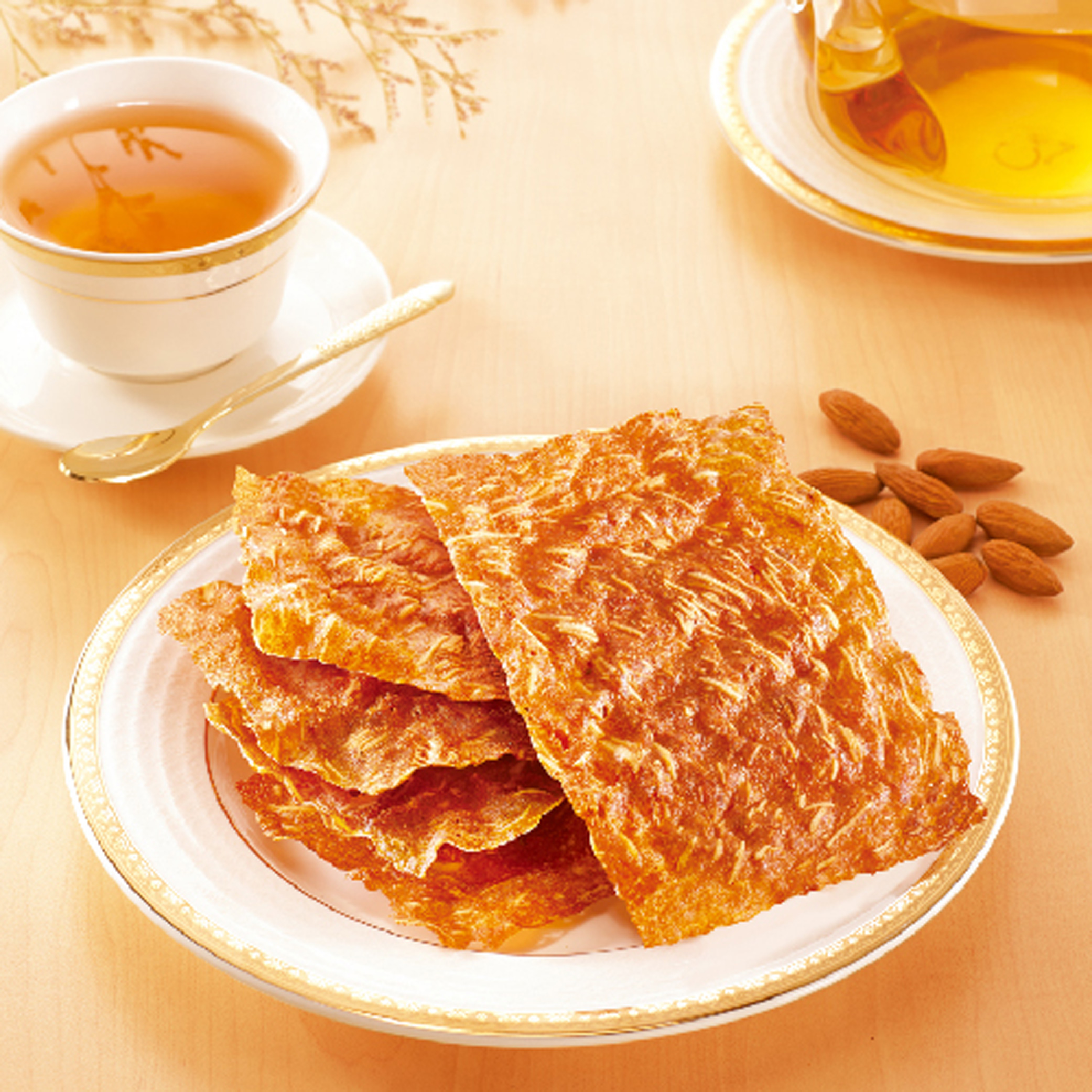「快車肉乾」開業至今已有38年,不只多年來堅持手工現烤的方式製作肉乾和豬肉紙,而且是要經過古法曝曬120天後才得以煉製而成古早味醬油,味道不容置疑!而最暢銷的就是加入美國加州杏仁片的「杏仁薄脆肉紙」,香脆可口不用說,還只有0.01cm厚,薄得能透光!