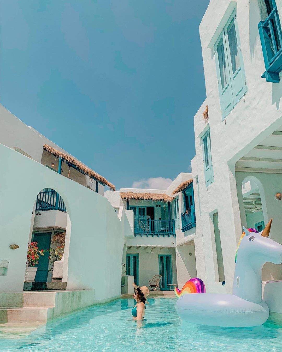 酒店之所以深受網紅歡迎,全因其以希臘洞穴小屋風格設計,以白色和藍色為主,酒店還模仿愛琴海的聖托里尼島上的地勢,一磚一瓦都充滿風味,「華欣希臘風酒店」這個名譽當之無愧!